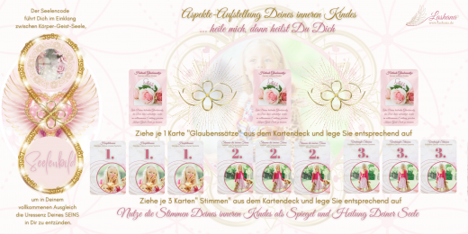 Mein Inneres Kind Heilkartenset mit der Aspekten-Aufstellung wird Dich dabei liebevoll auf Deine Reise begleiten und unterstützen.