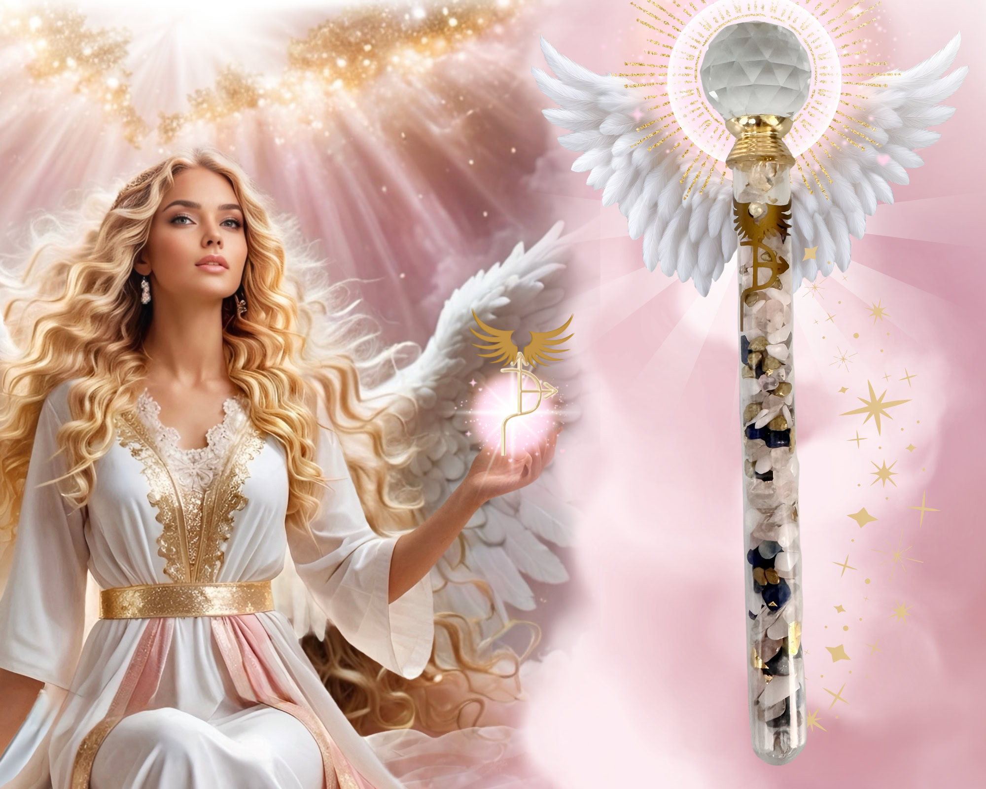 Der „Angelscall“ Edelsteinstab ist ein lichtvolles Werkzeug, das dir den Zugang zur Engelwelt erleichtert. Er öffnet die Tür, deine persönliche Engelsgruppe bewusst wahrzunehmen und ihre Botschaften klarer zu empfangen.