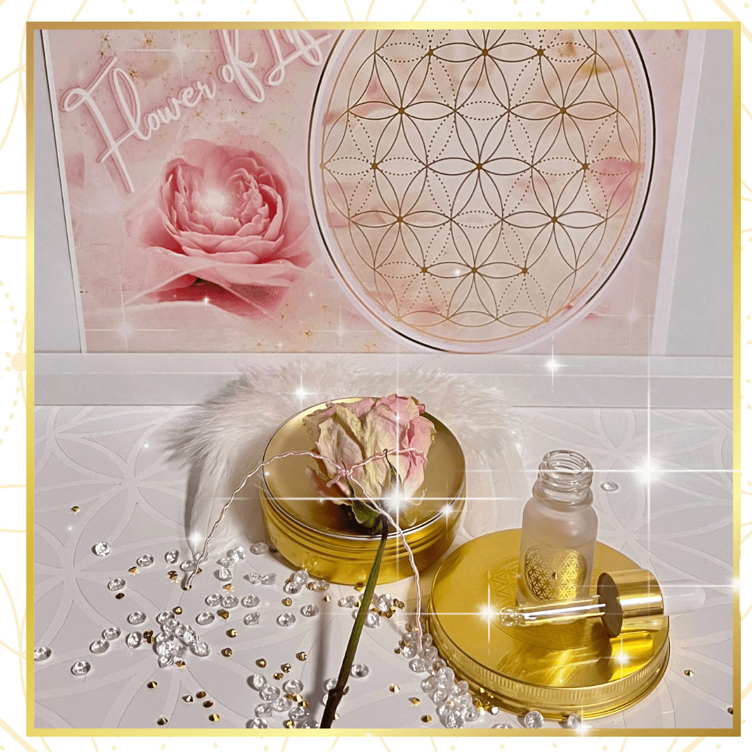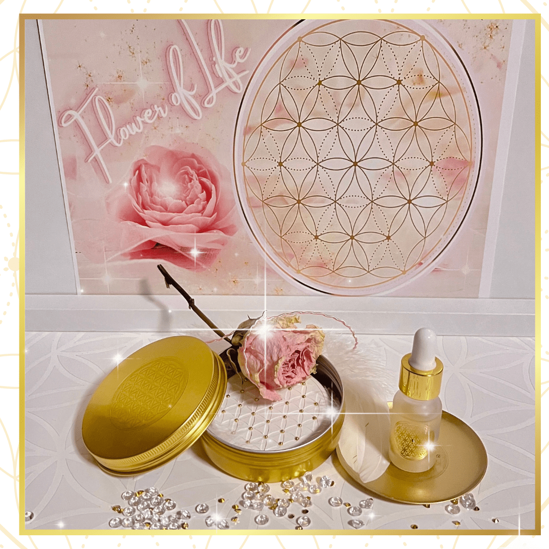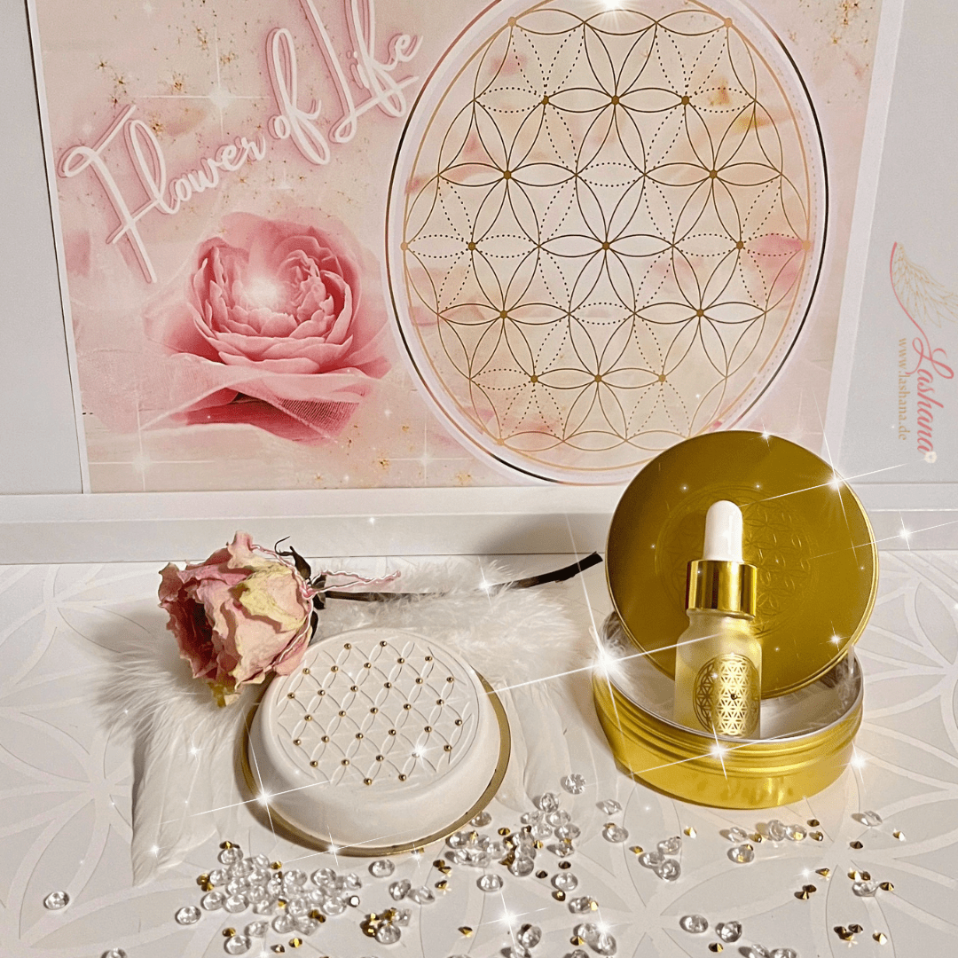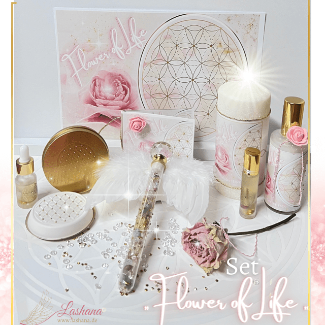 Das magische Set „Flower of LIFE“ trägt die universelle Schwingung der Blume des Lebens – einem uralten Energie- und Schutzsymbol, das seit Jahrtausenden für Harmonie, kosmische Ordnung und göttliche Verbundenheit steht.