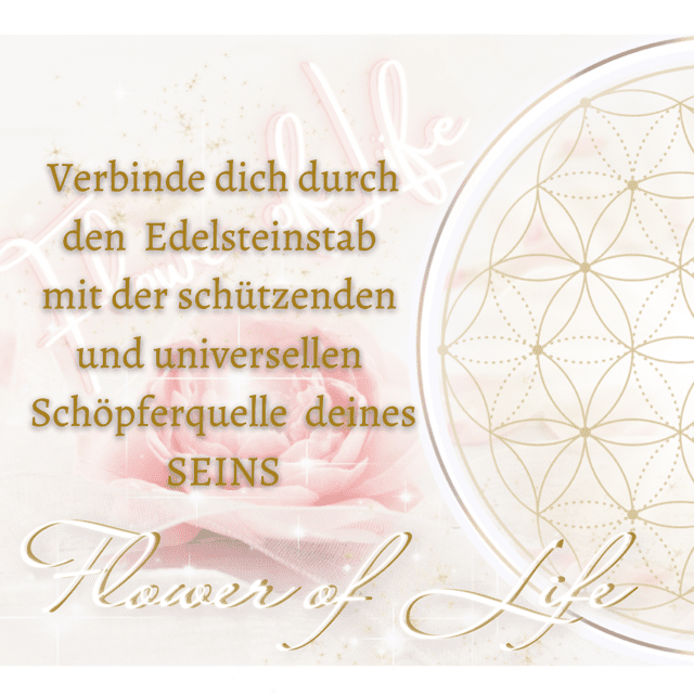 Mit dem energetisierten Flower of Life Edelsteinstab erschaffst du ein geschütztes Feld reiner Lebensenergie – für dich, deinen Raum, dein Wasser oder deine lichtvolle Praxis.