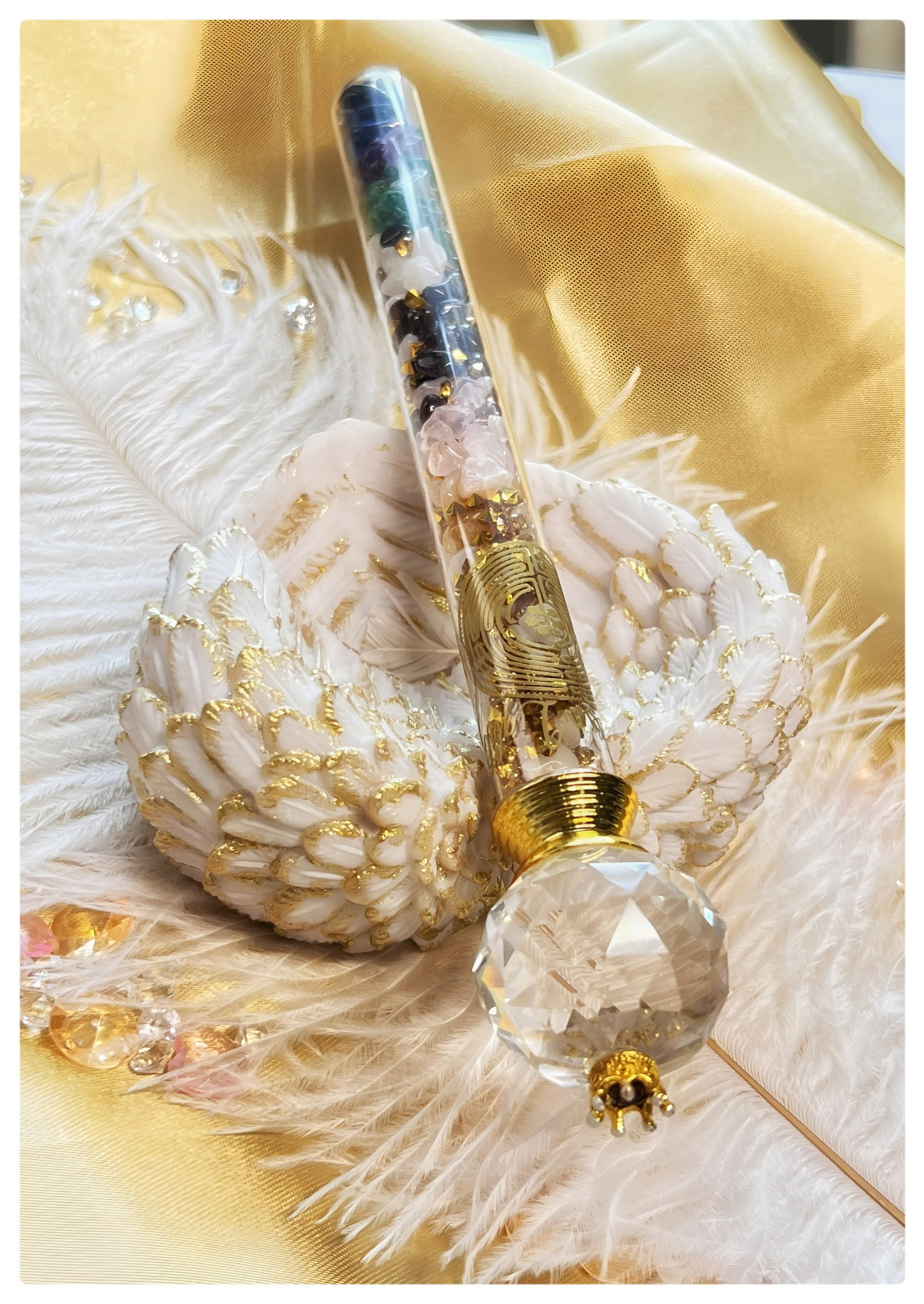 „Ich öffne mich für die Christus-Energie und empfange die heilende Führung der Engel.“ 4. Lege den Stab vor dich oder halte ihn auf dein Herz – spüre, wie Liebe, Heilung und Licht in dein Feld strömen.