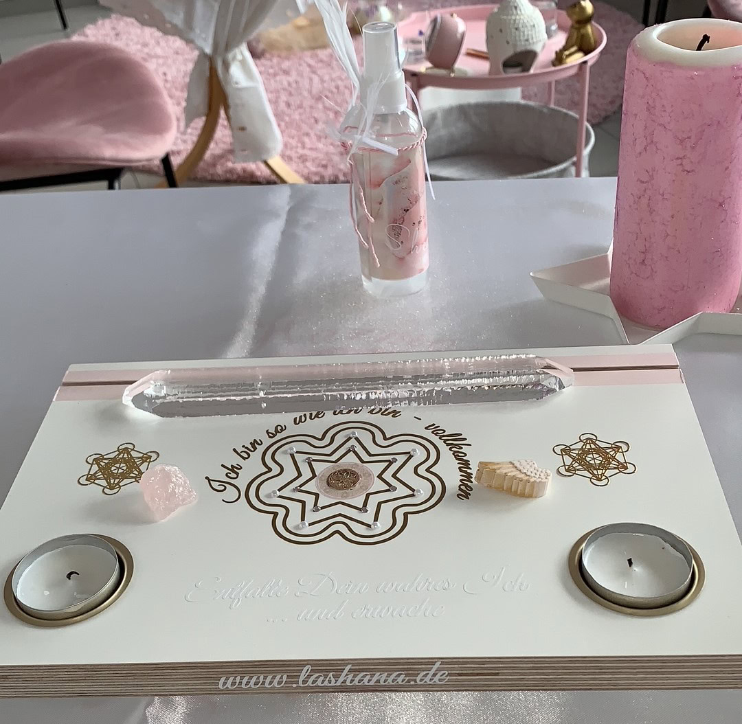 Ob als fester Platz für dein Kartendeck, als energetisches Zentrum deiner Heilarbeit oder als tägliches Lichtwerkzeug – dieser Altar wirkt wie ein Portal, das dich erinnert: