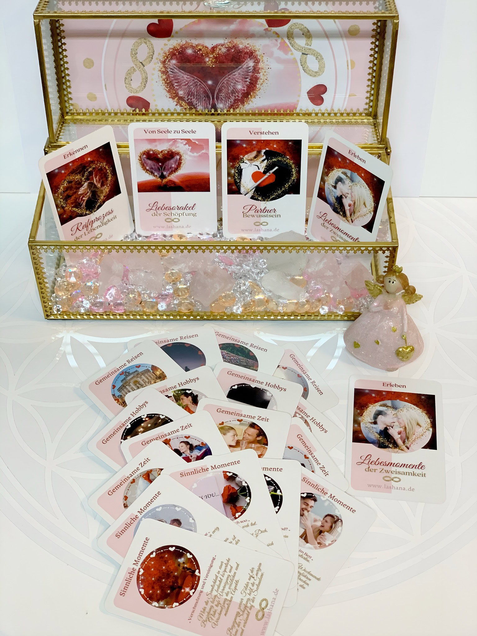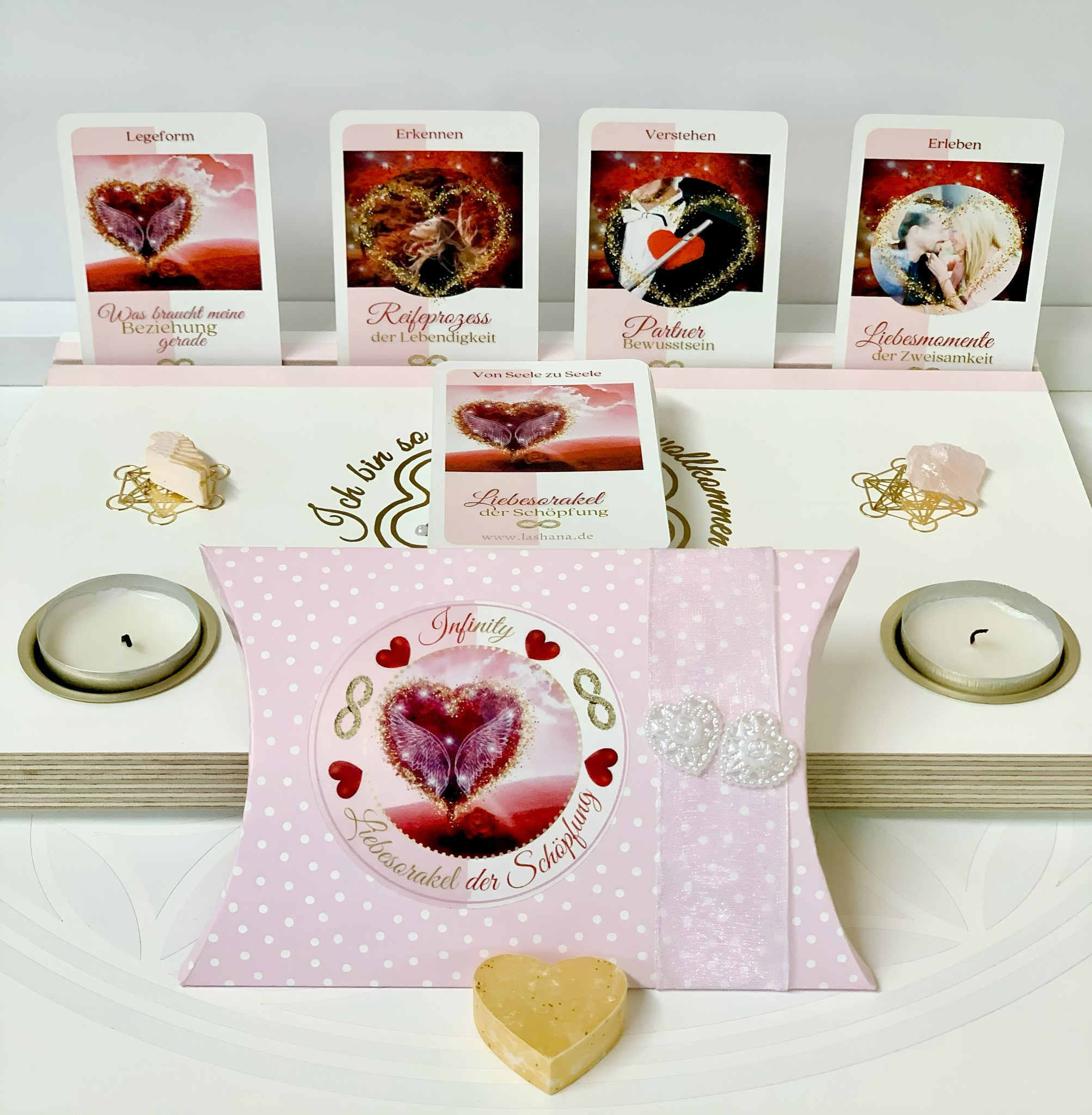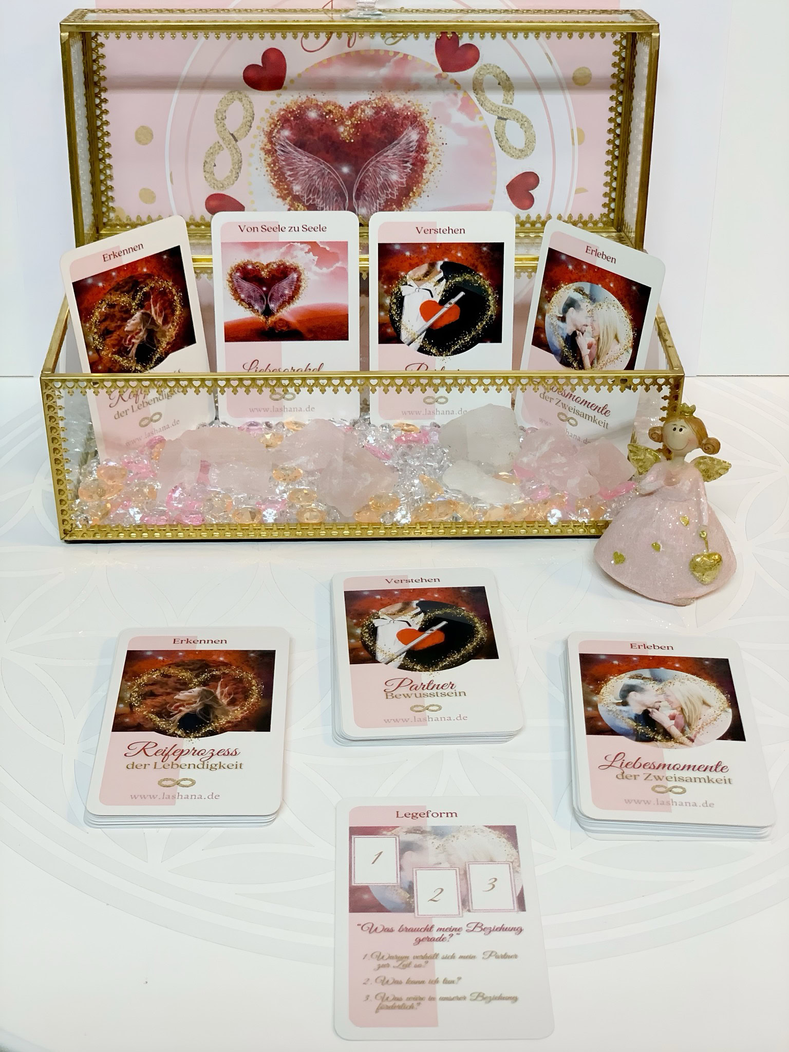 Ob für tägliche Impulse, tiefergehende Liebeslegungen oder bewusste Paararbeit – dieses Orakel wirkt wie ein leuchtender Spiegel, der dich zurück zu deiner Wahrheit führt.