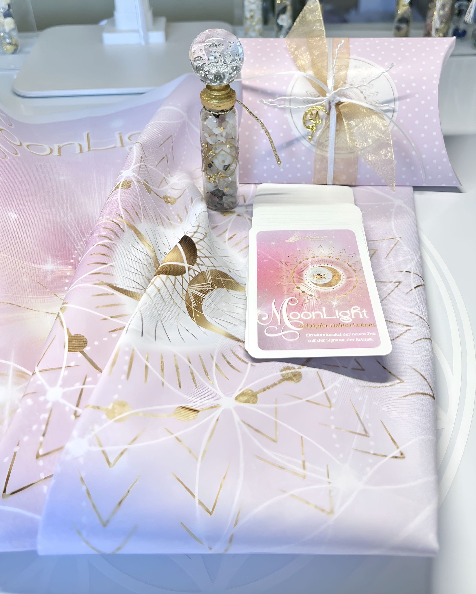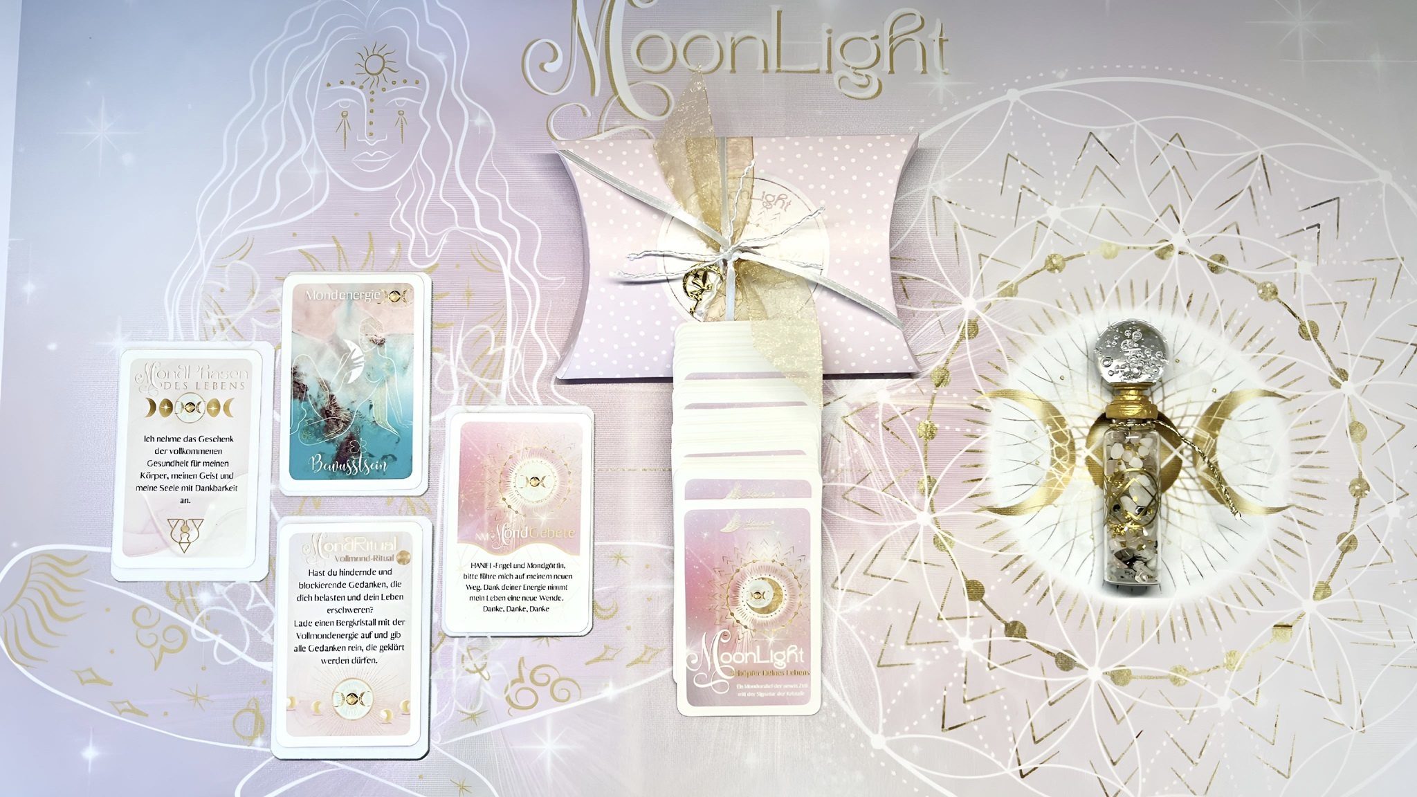 Das „MoonLight“-Set ist ein vollständiges Ritual- und Heilset, das dich besonders durch die Mondphasen begleitet.
