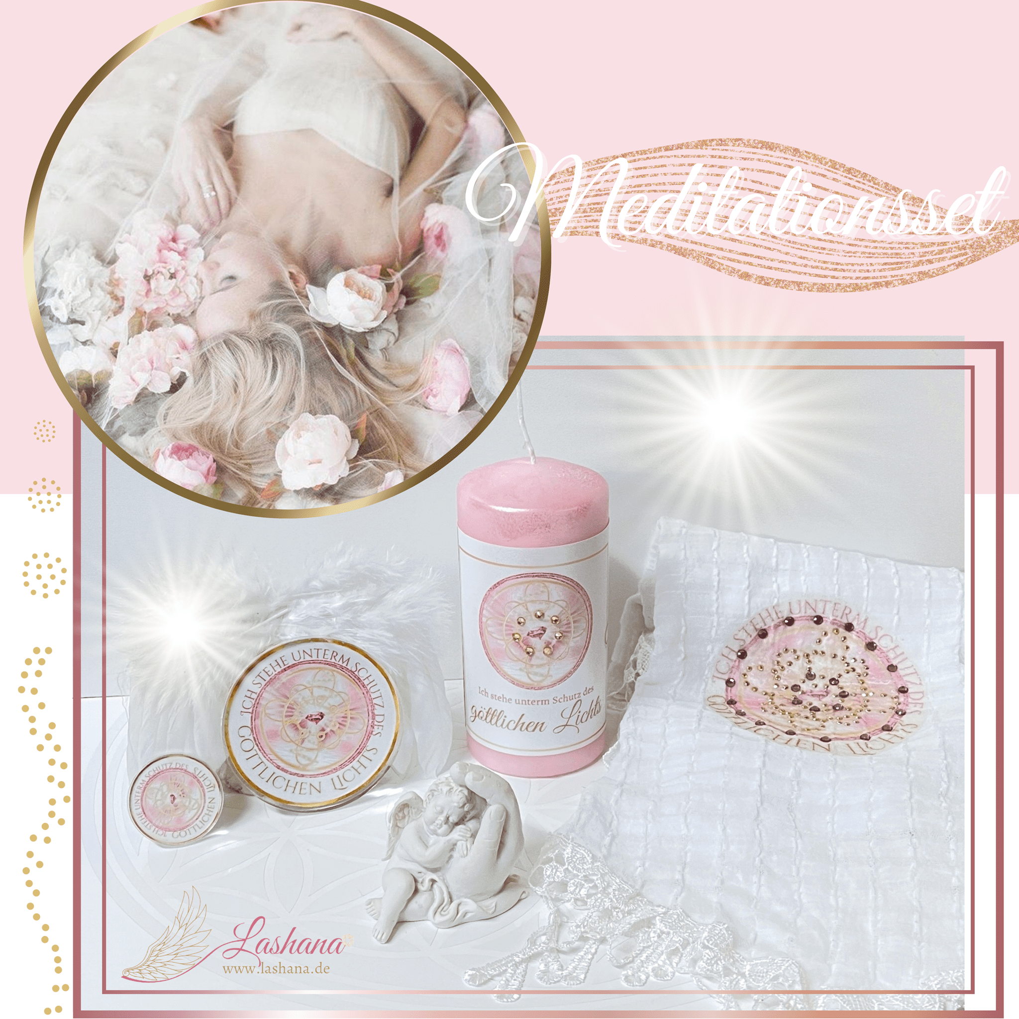 Dieses heilige Meditations-Set wurde erschaffen, um dir während deiner Meditation eine geschützte Lichtpräsenz zu schenken – frei von Fremdenergien, tief verbunden mit der göttlichen Quelle.