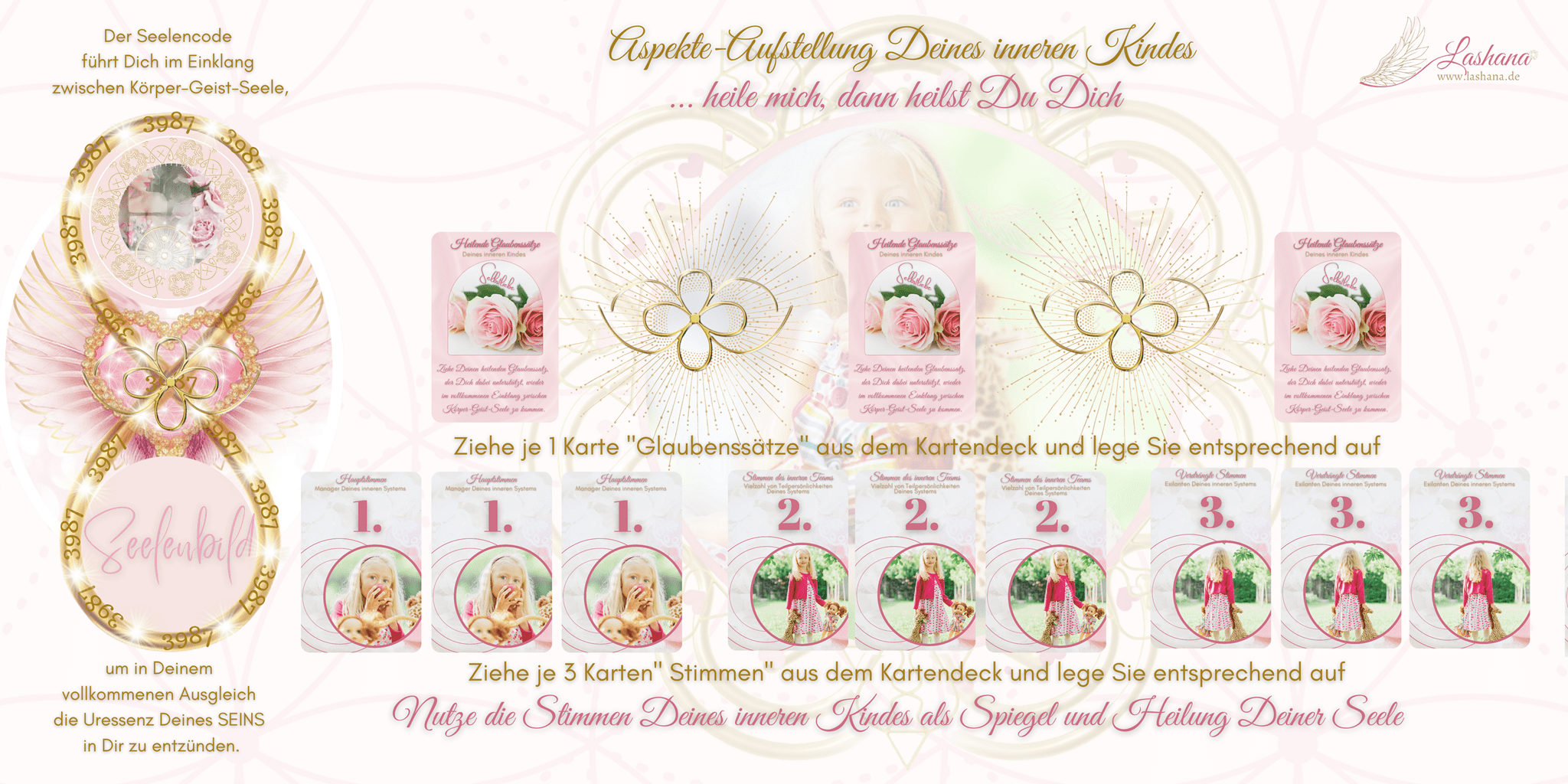 ✨ Dieses Ritual vereint Karten, Ergänzungs-Set, Edelsteinstab und Heilgebet zu einem vollständigen Heilprozess – für tiefe Transformation, liebevolle Verbindung zu deinem inneren Kind und nachhaltige Harmonisierung.
