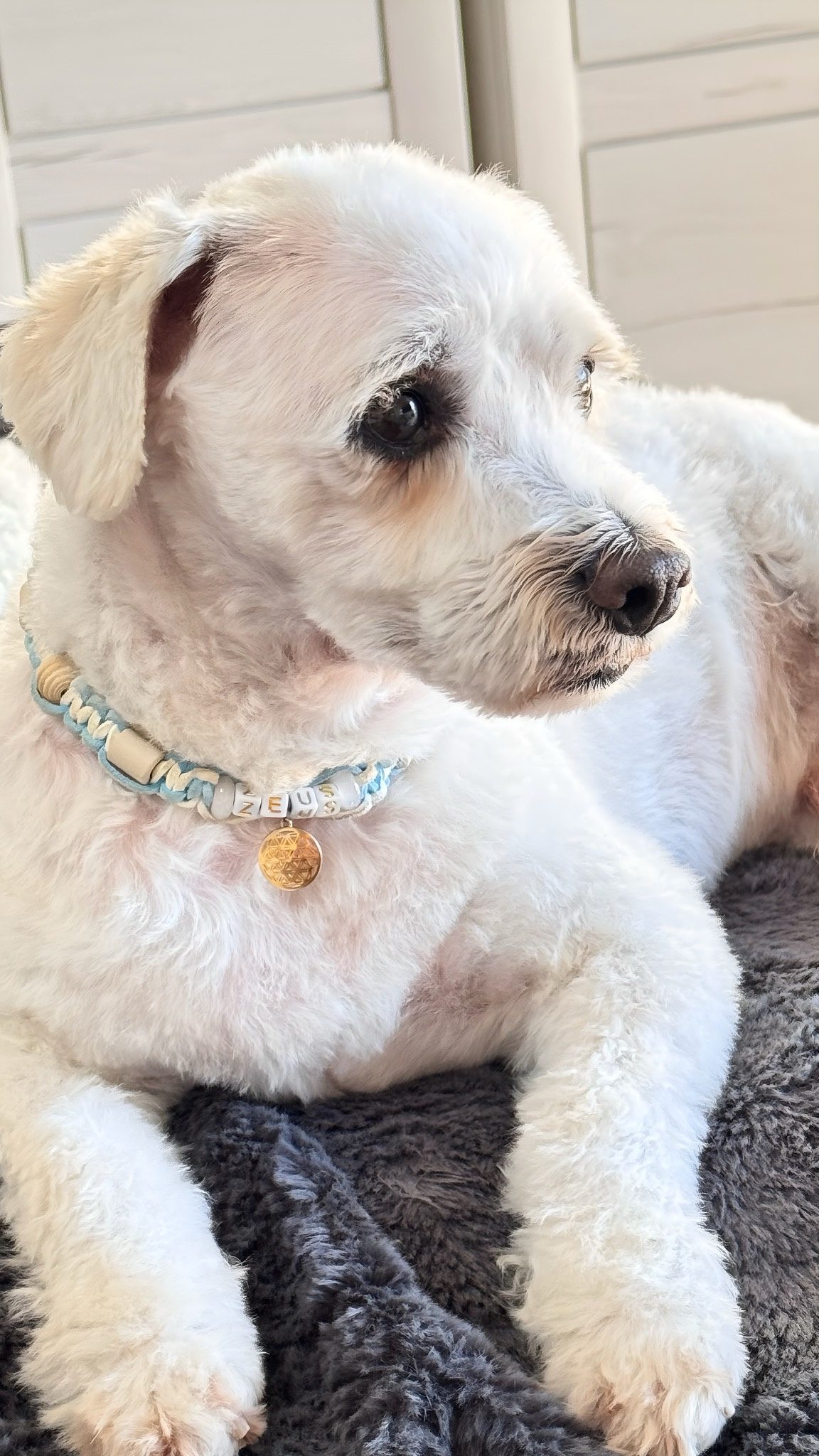 Das Sacred Paws Halsband hat mich sofort tief im Herzen berührt. Man spürt, dass es mit reinster Liebe, Sorgfalt und spiritueller Energie erschaffen wurde. Als ich es meinem Hund umlegte, war sofort eine sanfte, friedvolle Energie spürbar – er wirkt seitdem viel ruhiger, beschützter und getragen. Besonders die liegende Acht mit dem Blume-des-Lebens-Charm macht dieses Halsband zu etwas ganz Besonderem. Es ist nicht nur wunderschön, sondern schenkt meinem Hund auch spürbar Balance und Harmonie. Ich habe schon viele Dinge ausprobiert, aber dieses Halsband ist anders – man merkt, dass es ein lichtvolles Werkzeug ist und kein gewöhnliches Accessoire. Ich bin unendlich dankbar, dass ich meinem Tier damit Schutz, Liebe und Heilung geben darf.