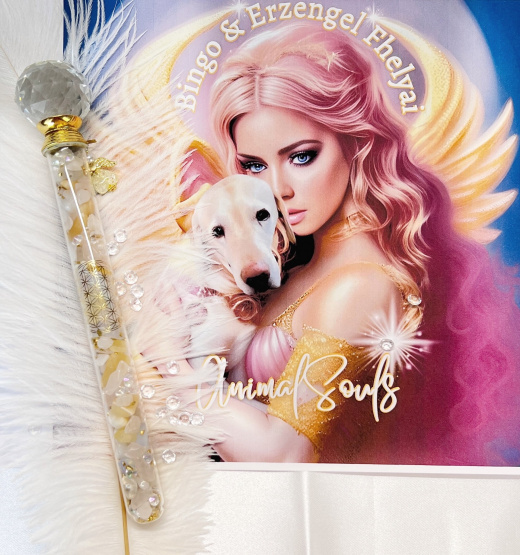 Der AnimalSouls Edelsteinstab enthält eine einzigartige Edelsteinmischung, die die Energie des Erzengels Fhelyai und die Präsenz meines geliebten Rüden "Bingo" vereint.